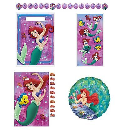 This Little Mermaid Economy Party Pack is full of items that are of everyone's favorites and a necessity for a great party, so when you get this fantastic pack, you will get these great items all together at a discounted price. This Little Mermaid Economy Party Pack includes (1) Treat Bags 8/pk, (1) Jointed Banner, (1) Stickers pack, (1) Tattoo pack, (1) Party Game, (1) Helium quality 18" Balloon, all in the themed look and character!